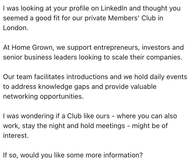 I could not be certain if this was some kind of mistake, or whether they had actually looked at my profile and considered that I might be the type of person to join a members’ club.